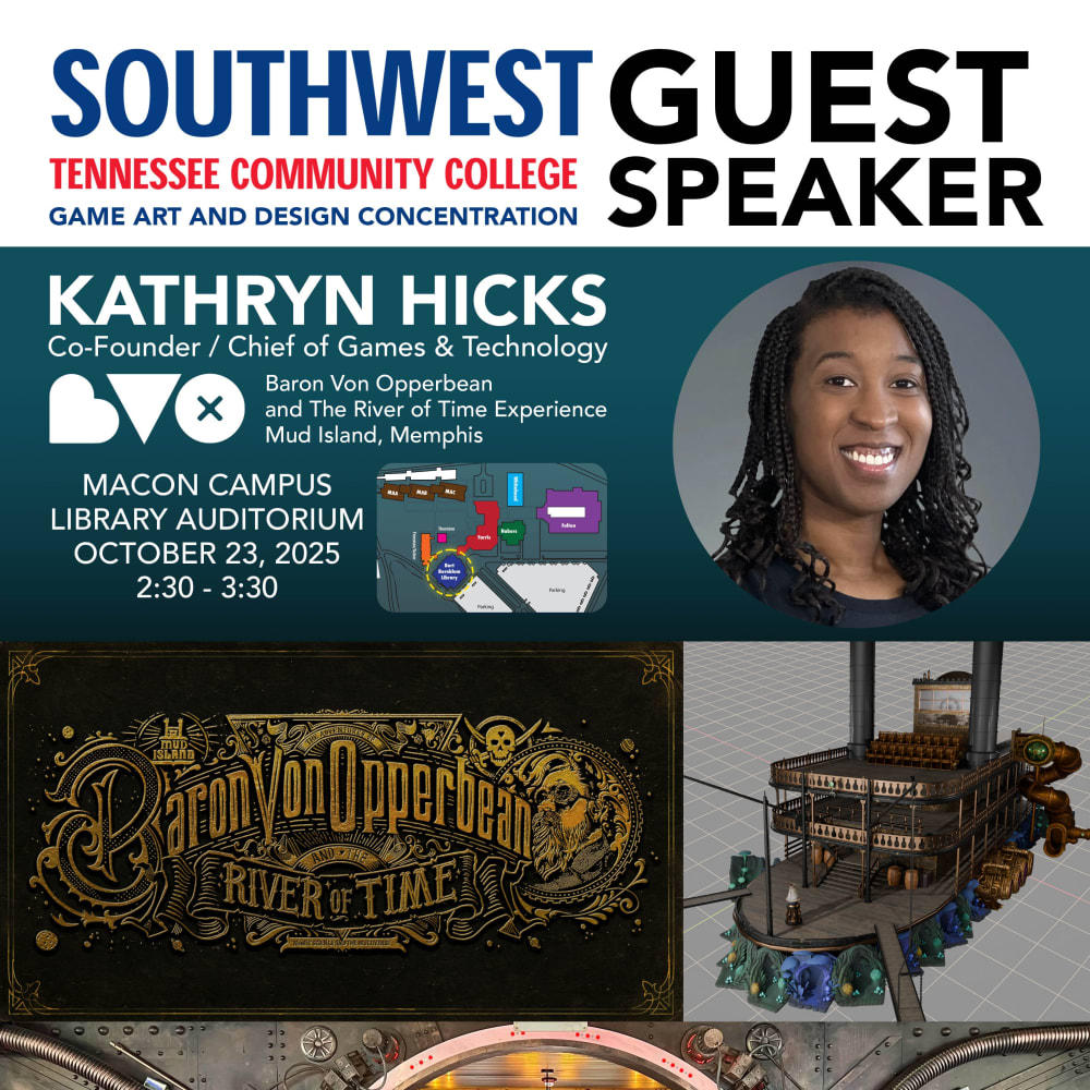 Global Game Jam 2026 – Memphis SiteJanuary 30 – February 1, 2026Schedule: Friday 5:00pm - 10pm Saturday 9:00am - 10:00pm...